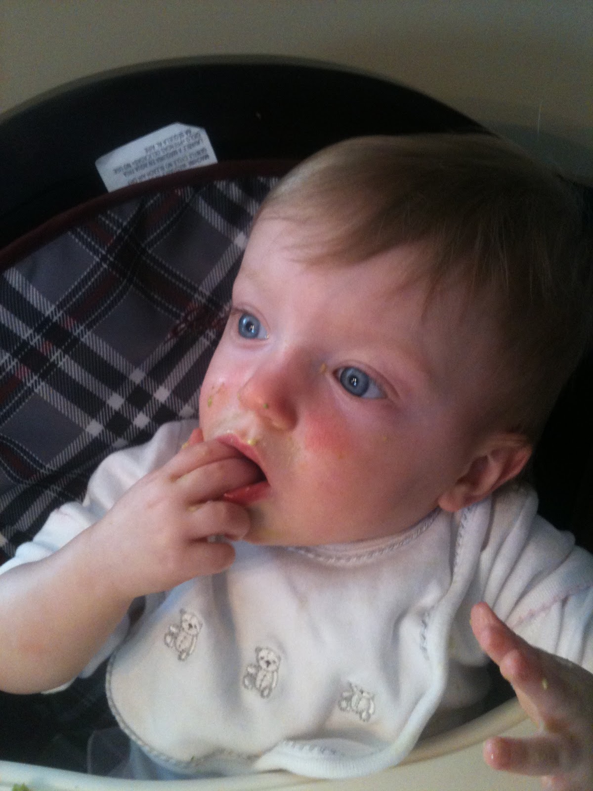 | I had to get a picture of this, because I've never seen a baby so very much covered in avocado and so very happy about it. Plus, Evie's making a face here that looks like one her daddy would make. |